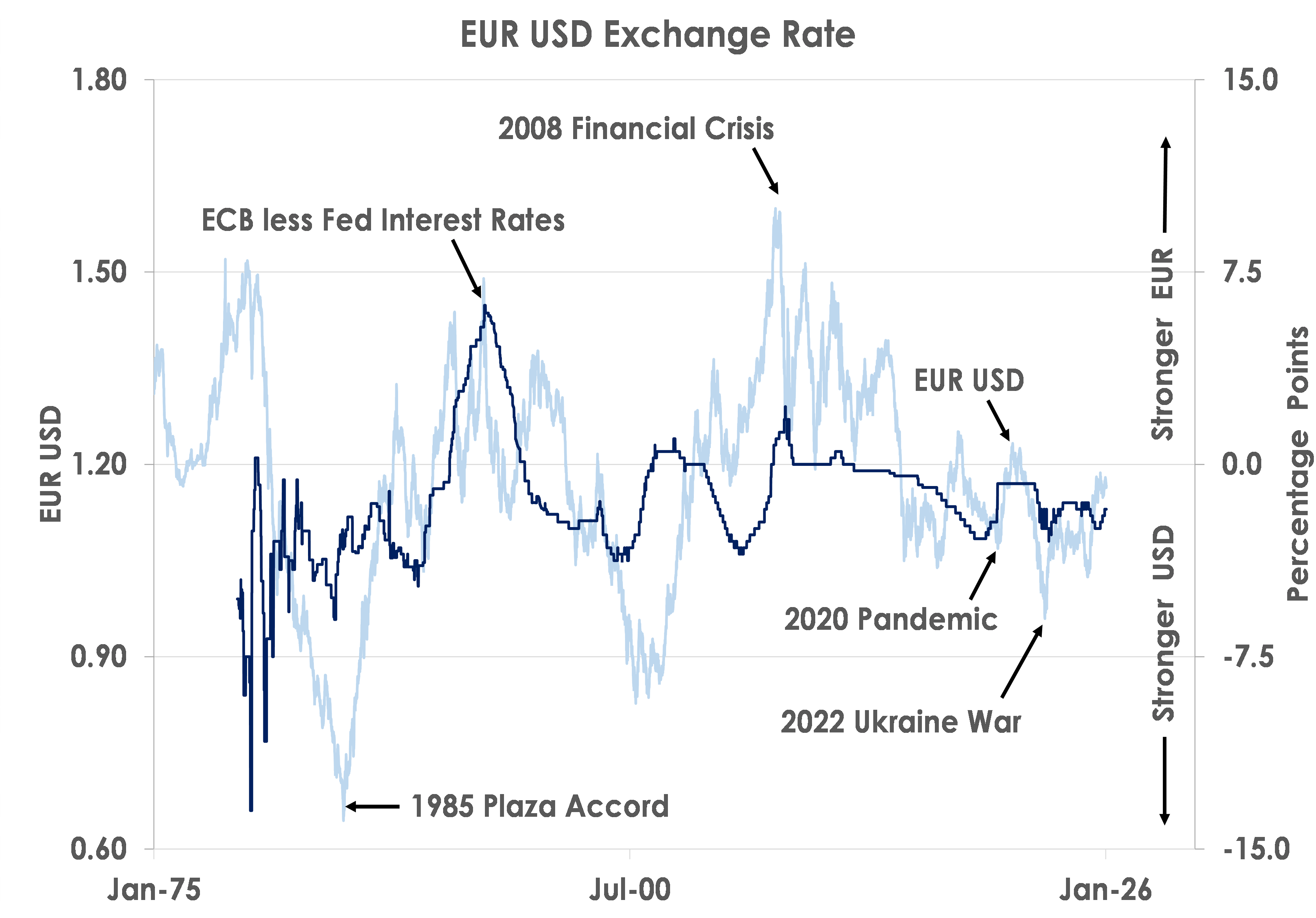 President Trump has threatened to impose additional 10% tariffs from 1 February on six European Union states plus the UK and Norway after the countries sent troops to Greenland. In response the EU is preparing tariffs on EUR93bn of US exports. Both sides will need to compromise quickly to avert a fresh trade war hurting global growth this year.