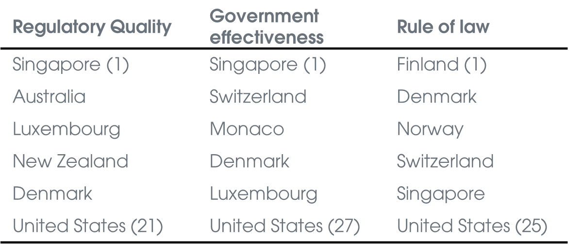 Exhibit 4: Top 5 countries based on key governance indicators and US rank