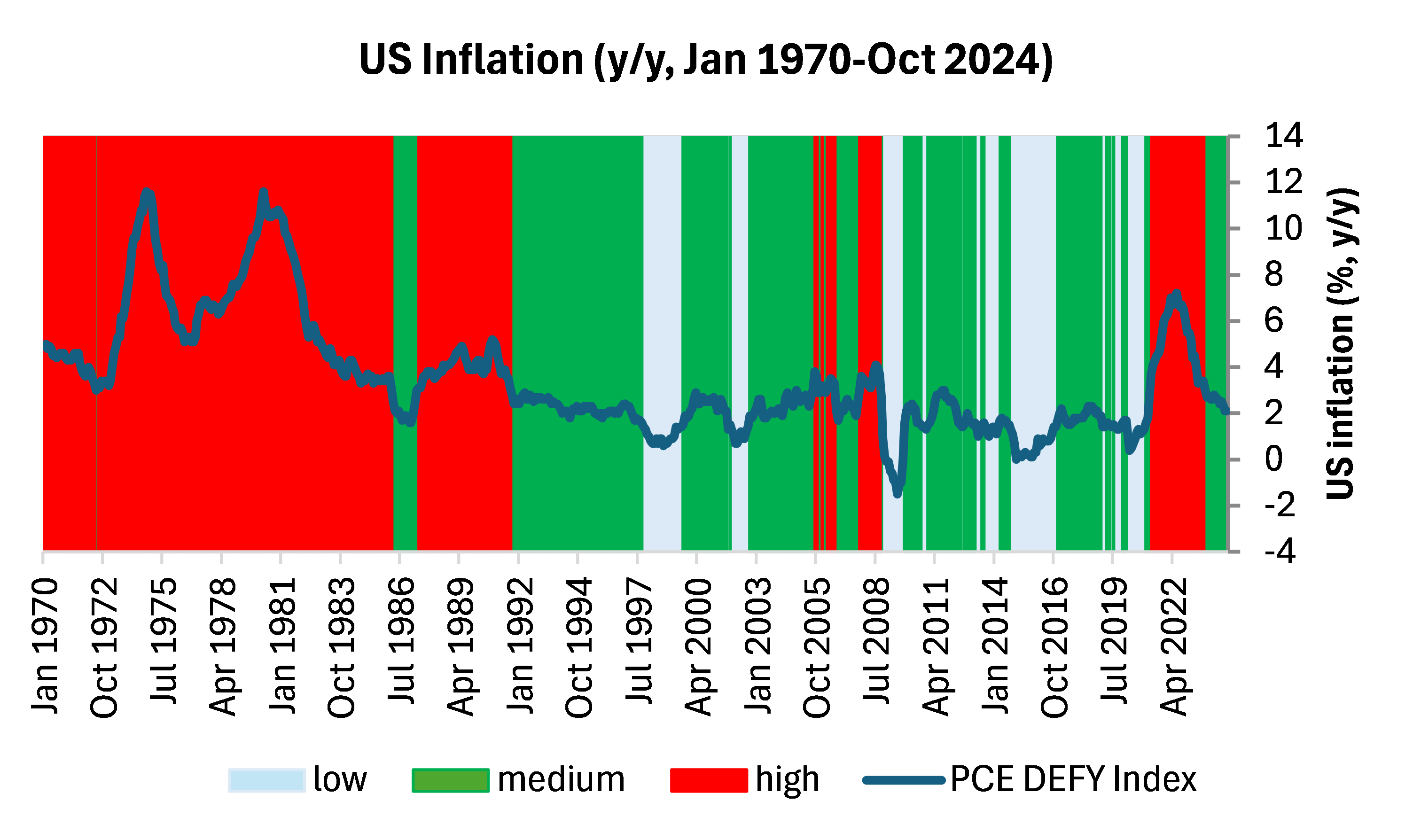 Exhibit 3: US inflation (monthly, YoY changes, Jan 1970 – Oct 2024)