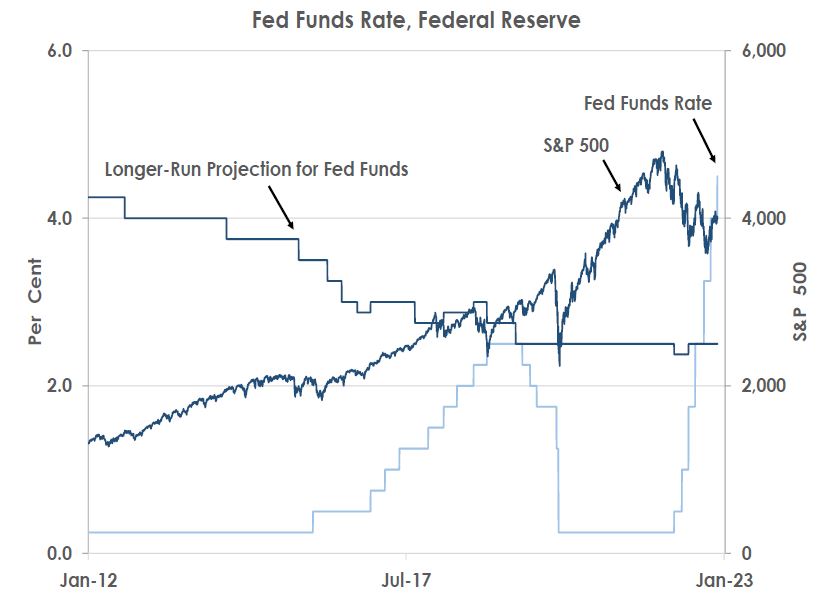 After the CPI data, the S&P 500 finished 0.3% higher, 10Y Treasury yields fell sharply by 10bps to 3.45% and the USD weakened to nine-month lows of 1.08 against the EUR. Investors hope the Fed’s aggressive tightening shown in the second chart is close to its end now as US inflation falls.