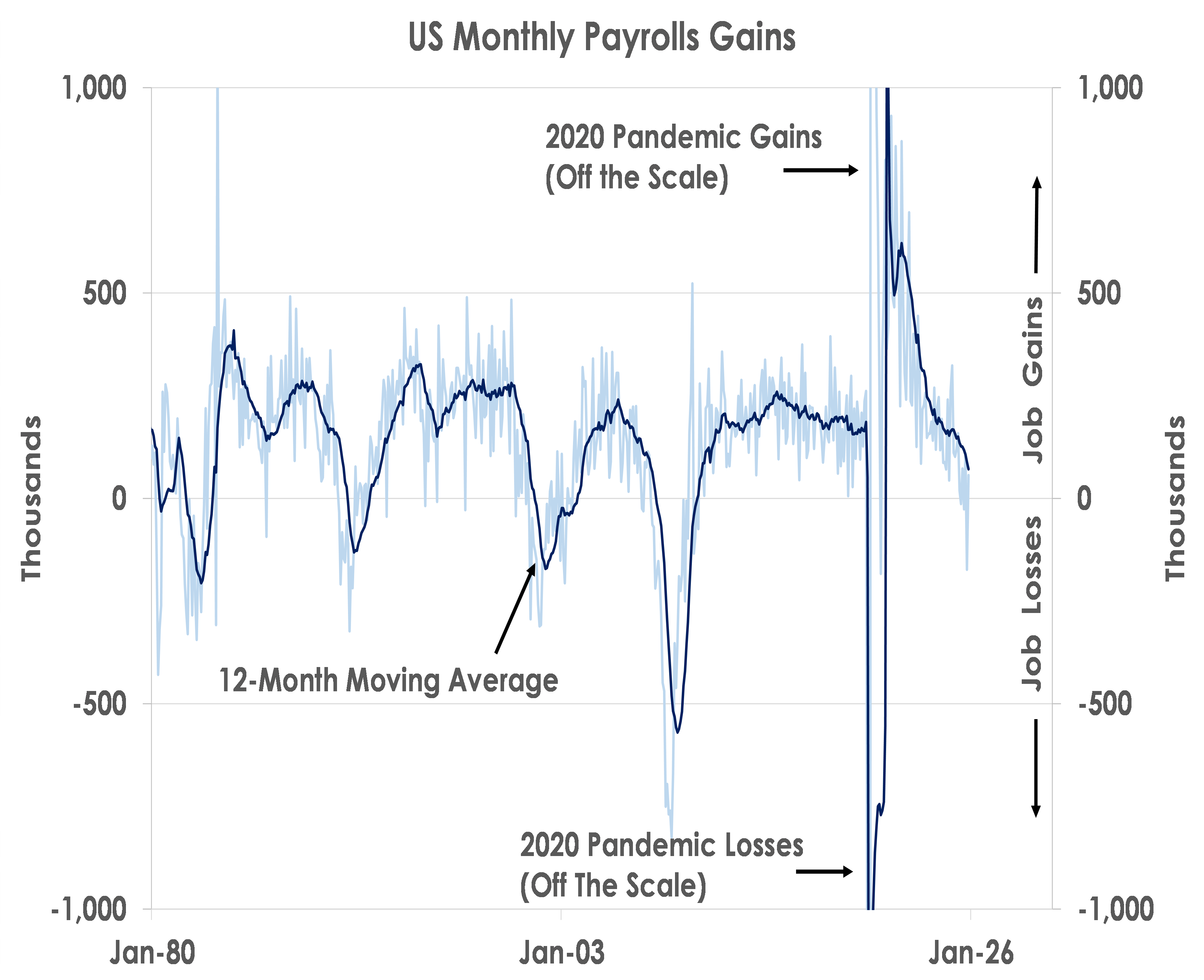 December’s US jobs report was mixed. Payrolls increased by only 50,000 and prior months were revised down by 76,000 overall. As the first chart shows, jobs growth has slowed sharply since President Trump announced steep tariffs in April.