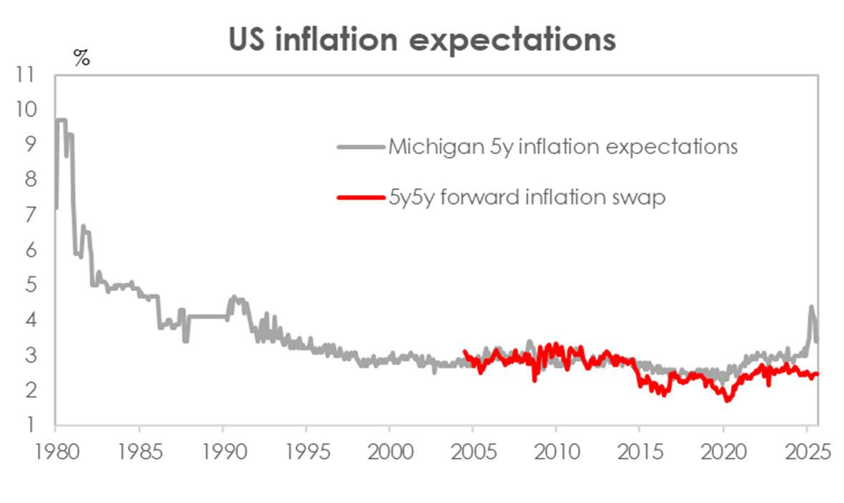 Inflation expectations remain anchored, but a loss of Fed independence would risk a de-anchoring