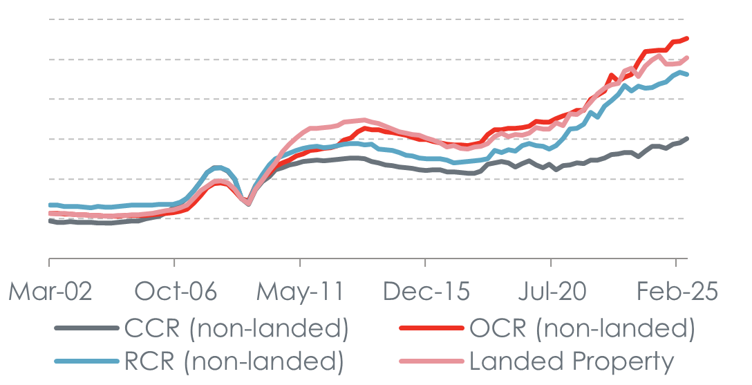 The Singapore residential market has demonstrated notable resilience in price performance. The URA Private Residential Property Price Index (PPI) appreciated 1.8% in 1H25 as compared to end-2024. We forecast private residential property price growth of +2% to +4% in 2025, underpinned by a more favourable interest rate environment, less pessimism on the global economy, higher launch prices of new projects with decent sell-through rates and strong household balance sheets.