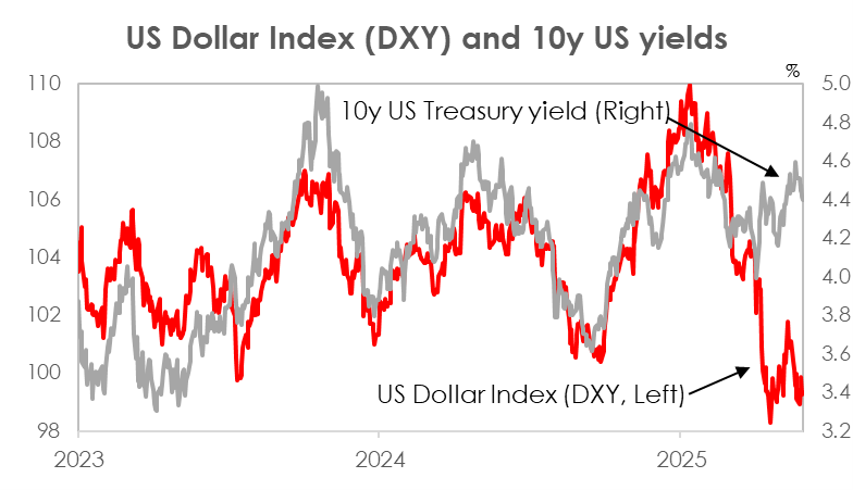 The USD downtrend momentum has stalled in response to tariff de-escalation. Despite the lower US recession risk, the end of USD exceptionalism still has some way to run in our view. It now seems that the market is more at risk of under-estimating the odds of a return to higher tariffs.