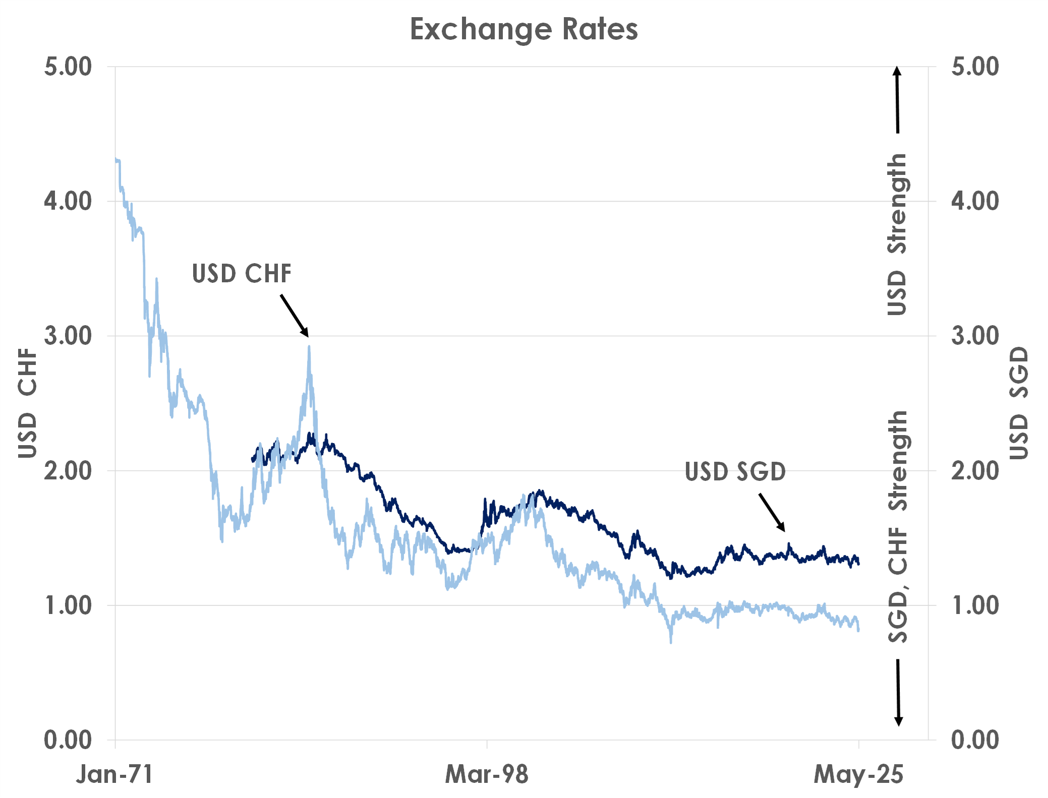 Currencies do not move in straight lines. The MAS acts against excessive SGD strength. Trade wars are a major risk. But Singapore’s fundamentals may spur the SGD to reach parity with the USD in our lifetimes just as the CHF did after the 2008 financial crisis.