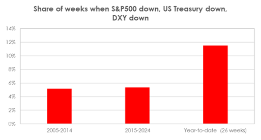 US Treasuries and the USD have been selling off alongside lower equities more often