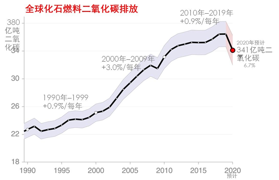 尽管去年新冠疫情使得全球化石燃料使用和工业碳排放量下降,但距离净零排放依然任重道远(见图表2)。