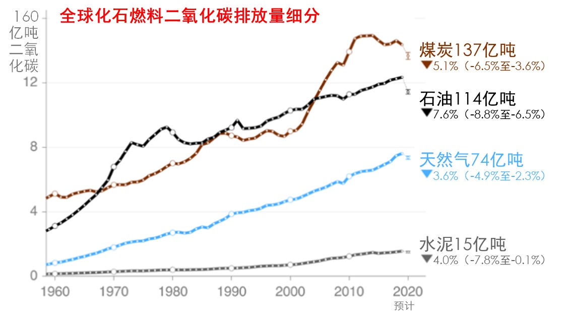 图表3:煤炭仍然是全球化石燃料使用和工业碳排放的最大来源