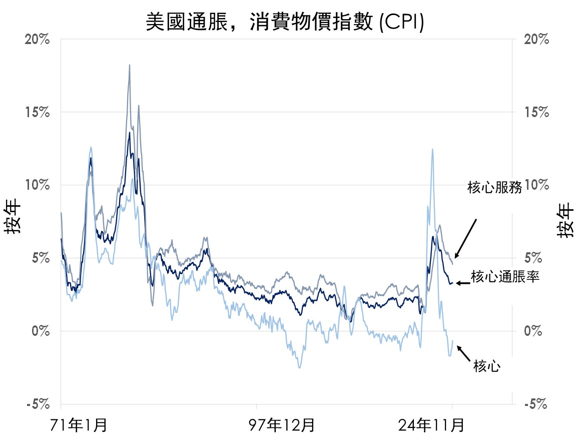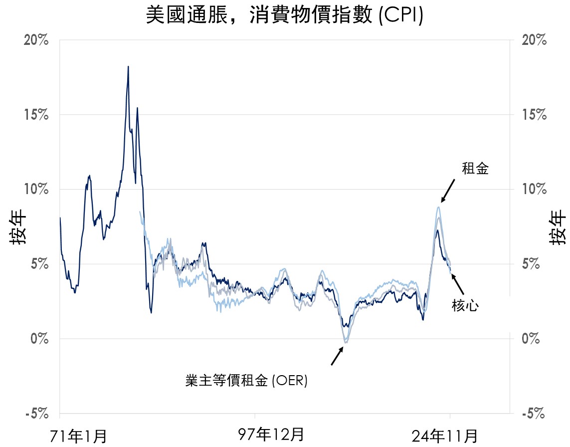 其次,由於租金通脹下降將繼續拉低整體通脹,聯儲局應仍能夠在2025年初進一步降息。2025年,聯儲局降息、監管環境放寬及潛在的減稅政策將繼續利好股票。