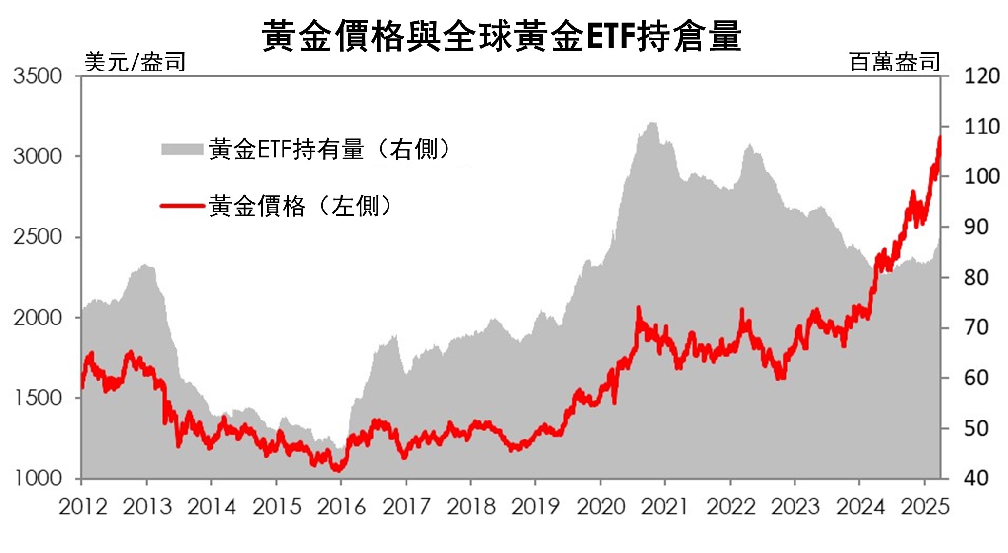 自2024年中以來,黃金ETF扭轉了近年來的資金外流趨勢。儘管近期資金流入的勢頭不斷增強,黃金ETF全球持倉總量仍顯著低於五年前的歷史高位,顯示增持趨勢後勁十足。鑑於關稅政策帶來的不確定性依然高企,投資者或將持續買入黃金以對沖滯脹風險。