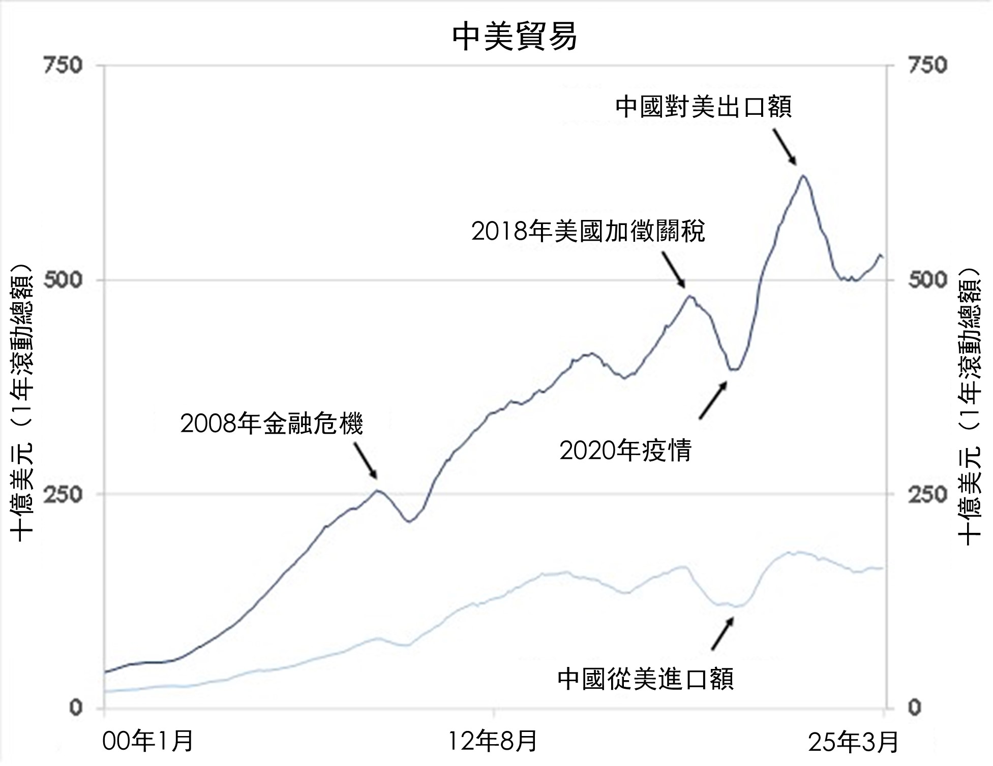 中方數據顯示2024年對美出口額約5,250億美元,美國數據則顯示同年從中國進口額為4,400億美元。據此測算,若美國對中國商品全年徵收145%的關稅,美國消費者將承擔相當於美國GDP 2%以上的額外實際稅務負擔。本行認為,這種潛在的收縮效應將拖累美國經濟增長,加上美國資產同時遭拋售的話,中美雙方有望達成協議,以避免市場陷入無以為繼的局面。