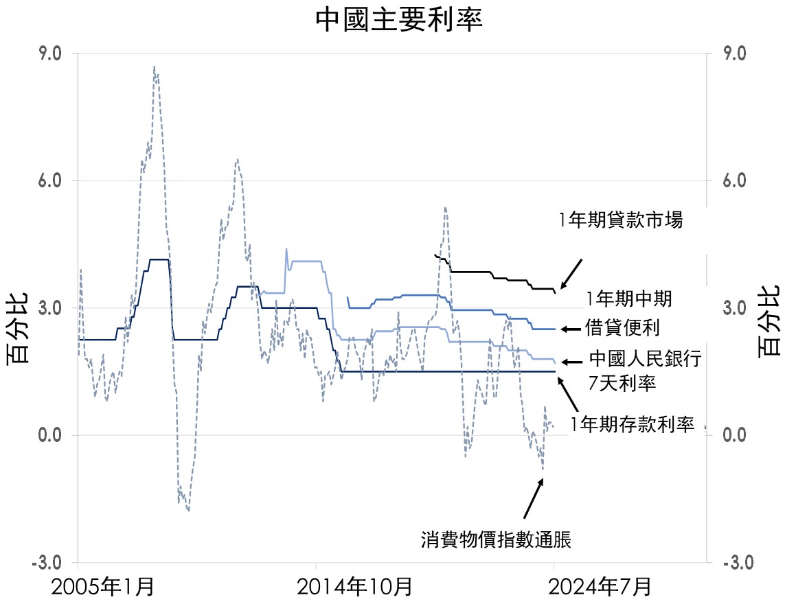 中国人民银行放宽政策条件旨在“加大金融支持实体经济力度”。在本次货币政策行动之前,已出台其他放宽财政政策和房地产限制的措施。例如,中央政府开始发行1万亿元人民币超长期国债,为战略性投资筹集资金。此外,房贷最低首付比例也下调,而且中国人民银行设立3,000亿元人民币保障性住房再贷款,支持国企收购已建成未出售商品房。