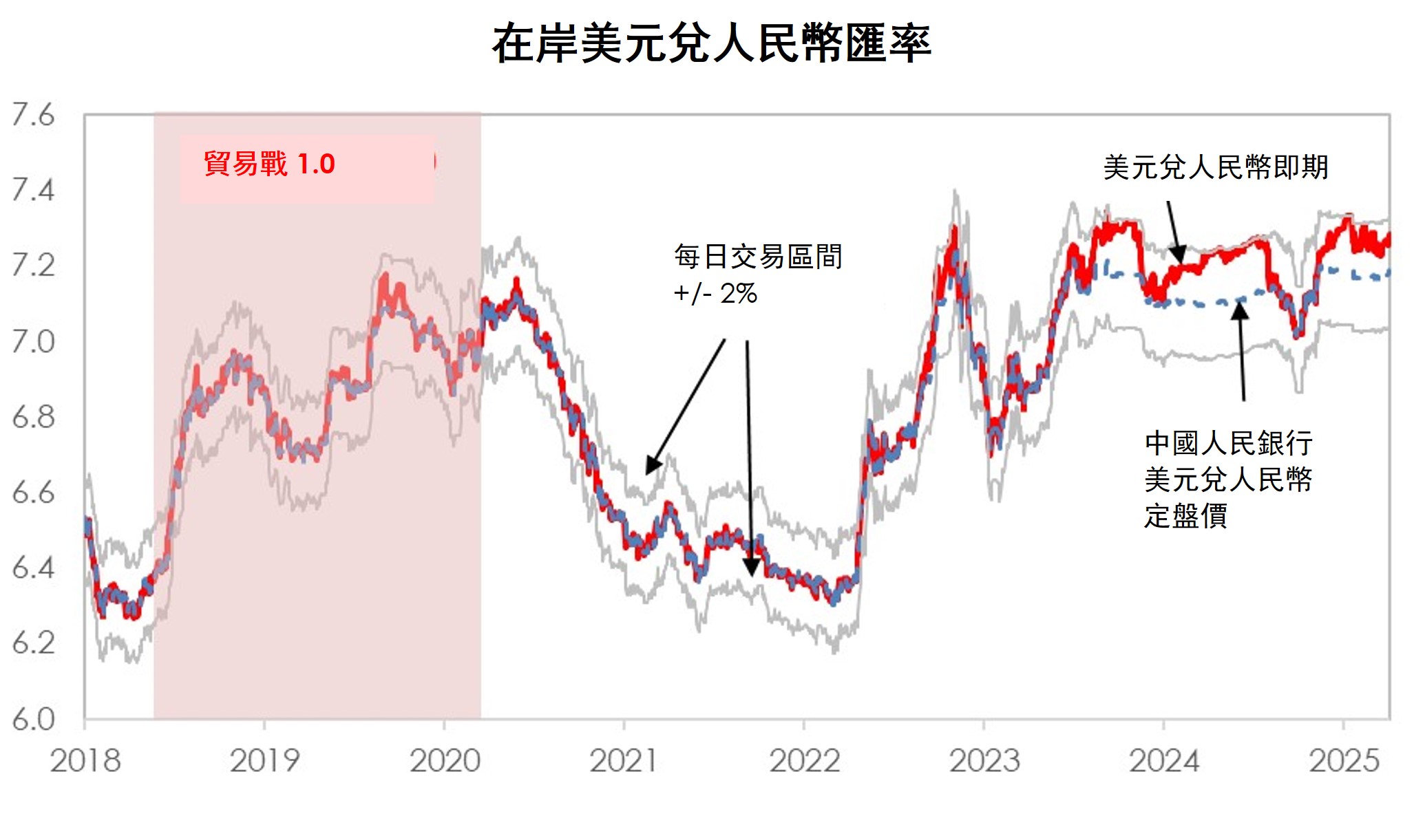 儘管關稅計劃推出後美元兌人民幣匯率中間價有所上漲,但仍維持在7.20以下。 本行認為,中國政府有強烈的動機維持合理且穩定的美元兌人民幣匯率,以避免擾動國內市場情緒。 然而,為減輕關稅對中國出口商的衝擊,或需要適度調整匯率。
