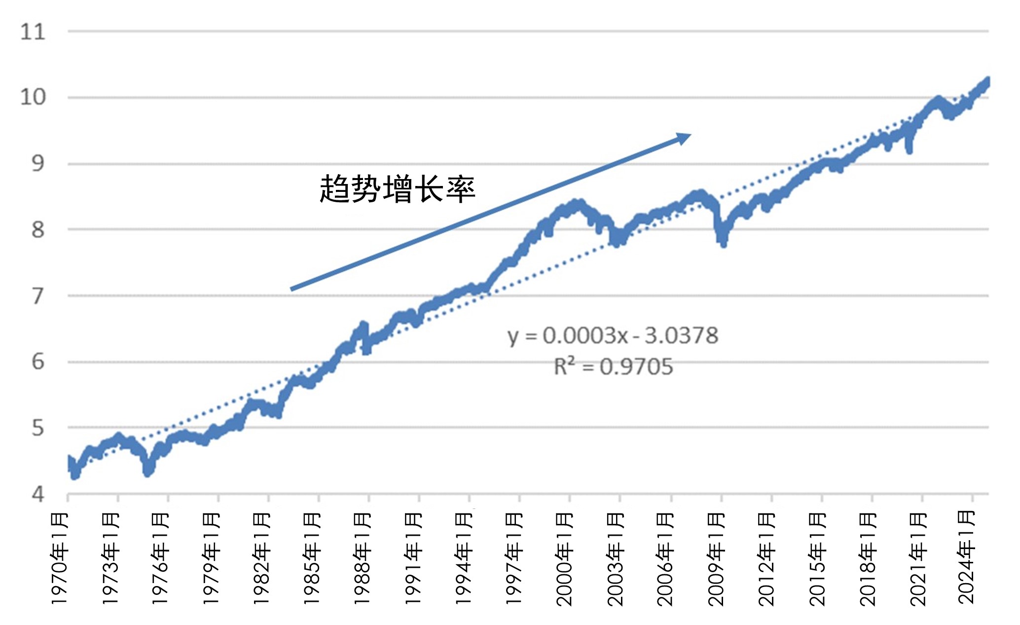 圖表1:標普500總回報指數(以自然對數呈現,1970-2024年每日數據)